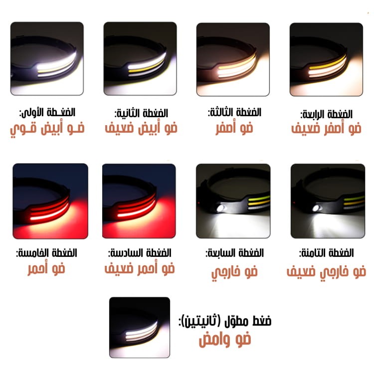 خفيف وايد وأفضل بكثير من مصابيح الراس الثانية اللي عندي وكانت ثقيلة وكبيرة. الضو الرئيسي قوي، وضو الجنب بعد يشتغل ممتاز.
